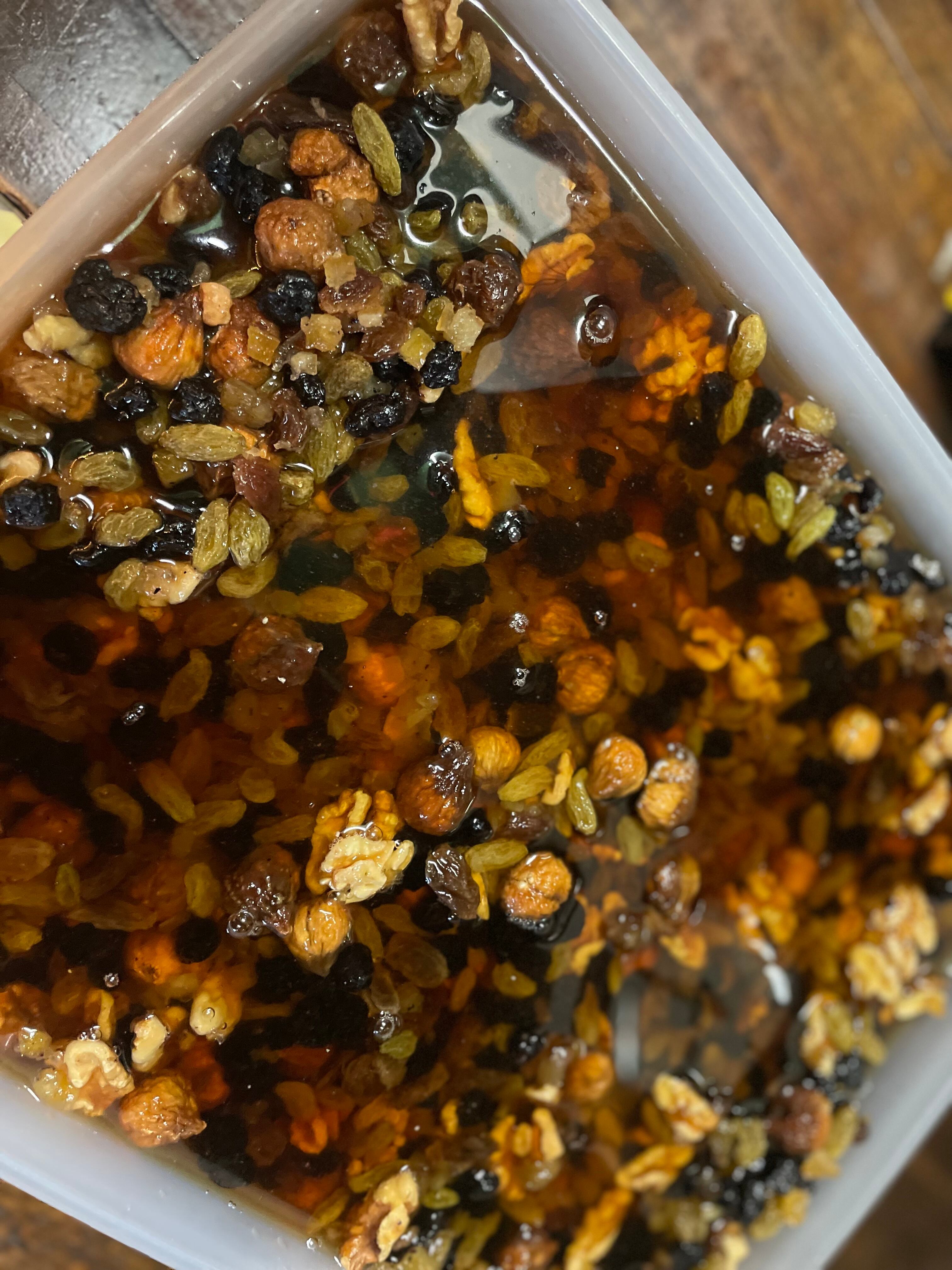 有機ブルーベリー・オーガニックサルタナレーズン・イラン産白無花果・レモンピール・胡桃・スリランカアルバ級(特級スパイス)シナモンをはじめ7種類のスパイスと共にブランデーで漬け込んだ期間、なんと!最短35日!?